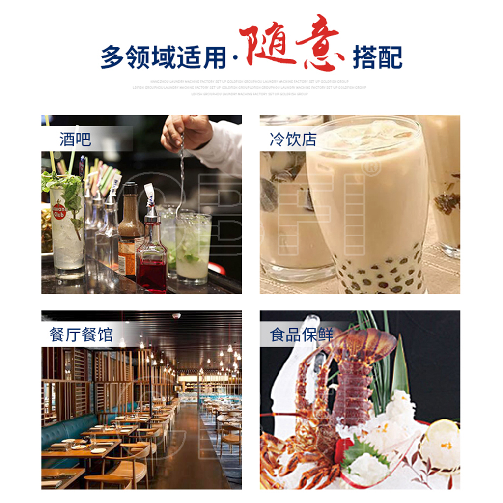 遍布于賓館、酒店、酒吧、宴會(huì)廳、西餐廳、快餐店、便利 店以及冷飲店等需要冰塊的地方,滿足每一位需要顆粒冰的客戶。