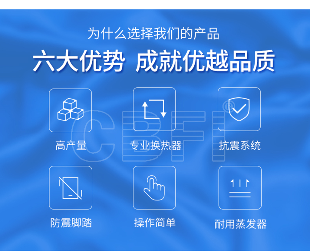 5、性能穩(wěn)定:冰塊晶瑩剔透,硬度高、規(guī)則均勻、美觀大方、儲(chǔ)存吋間長、干凈衛(wèi)生,完全符合國家食用冰衛(wèi)生要求;