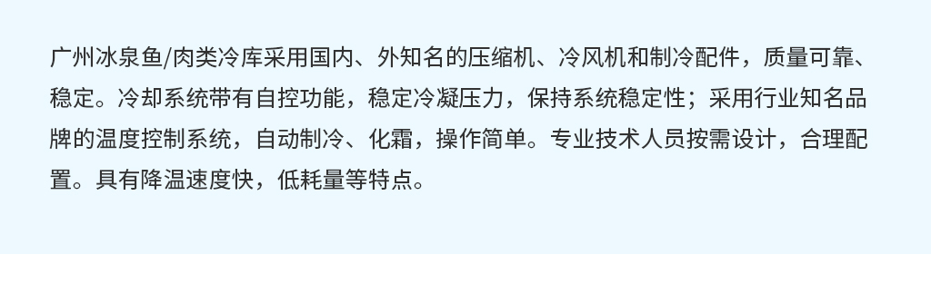 廣州冰泉制冷設(shè)備有限責(zé)任公司專注制冷行業(yè)十余年,在冷庫領(lǐng)域,不單單進行傳統(tǒng)的冷庫設(shè)計和銷售,同時為客戶提供全套方案設(shè)計、采購、安裝、調(diào)試、維護以及運營監(jiān)控等一體化交鑰匙工程服務(wù)。