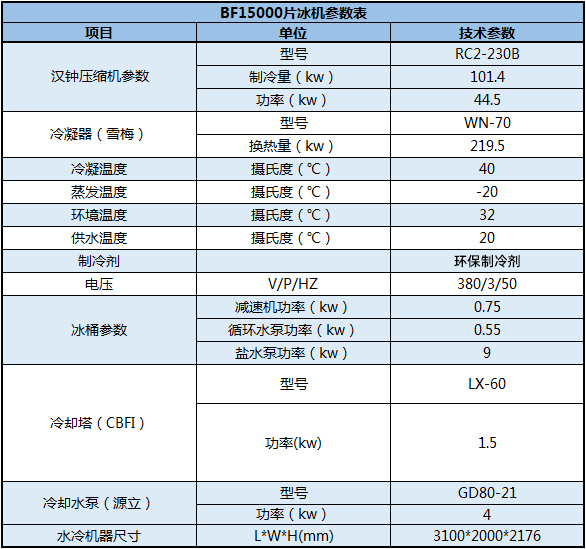 BF15000片冰機參數(shù)表