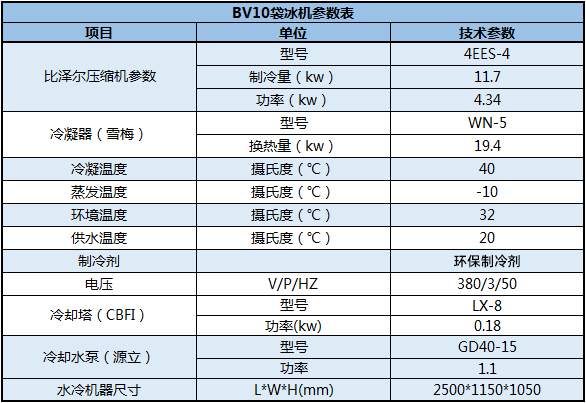 BV10袋冰機參數(shù)表
