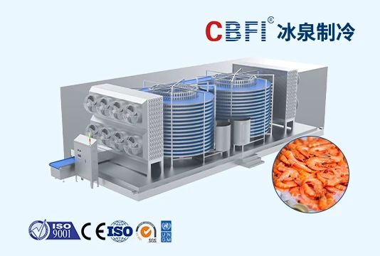 高效傳動(dòng)和速凍系統(tǒng),適用于食品加工廠和冷鏈物流的大批量速凍設(shè)備。