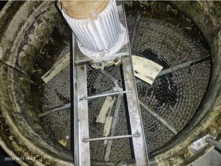 (某客戶現(xiàn)場(chǎng)多年未清洗的冷卻水塔底部,降低制冰產(chǎn)量)